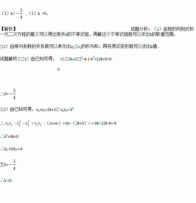 已知关于x的方程x2-(2k+3)x+k2=0有两个不相等的实数根x1,x2.