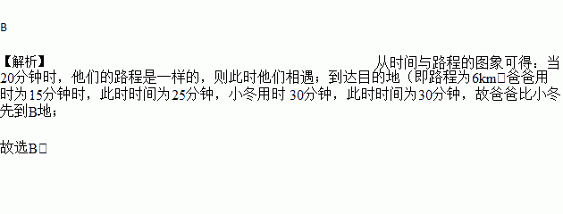 C. 4分时相遇,小冬先到 D. 20分钟时相遇,小冬先到.