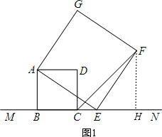 分析 (1)过F作FH⊥MN于H,由条件可证明△EHF≌△ABE,可证得CH=BE=FH,可求得∠FCH=45°,可求得tan∠FCN=1;