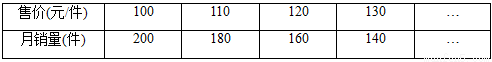 九年级数学兴趣小组经过市场调查,得到某种运动服每月的销量与售价的相关信息如下表: