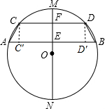 分析 根据垂径定理可得出①②正确;过点C作CC′⊥AB于点C′,过点D作DD′⊥AB于点D′,通过证明△ACC′≌△BDD′(SAS)可得出③正确;根据给定的条件无法找出MF和EF之间的关系,即④错误.综上即可得出结论.