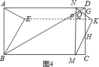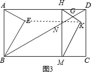 (II)当3<t≤4.5时,如图3所示,此时重叠部分为四边形BMKG.![]()