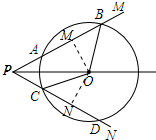 解答 证明:作OM⊥AB于M,ON⊥CD于N,如图所示:![]()