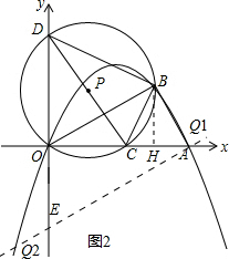 点评 本题主要考查了运用待定系数法求直线及抛物线的解析式、直线与抛物线的交点坐标、解方程组、勾股定理、三角函数的定义、圆周角定理、切线的判定等知识,综合性比较强,需要注意的是由于点Q相对于OB的位置不确定,因此需分情况讨论.