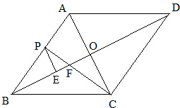 分析 由菱形的性质和已知条件得出∠ABO=∠EPF,证明△PEF∽△COF,得出∠EPF=∠COF,由tan∠EPF=tan∠OCF=$\frac{OF}{OC}$=$\frac{1}{2}$,求出OF=1,BF=3,设EF=x,则PE=2x,由tan∠ABO=$\frac{PE}{BE}$=$\frac{1}{2}$,得出BE=2PE=4x,得出BF=BE+EF=5x=3,解方程求出x即可.