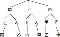 可得所有等可能的情况有6种,分别为甲,乙,丙;甲,丙,乙;乙,甲,丙;乙,丙,甲;丙,甲,乙;丙,乙,甲,