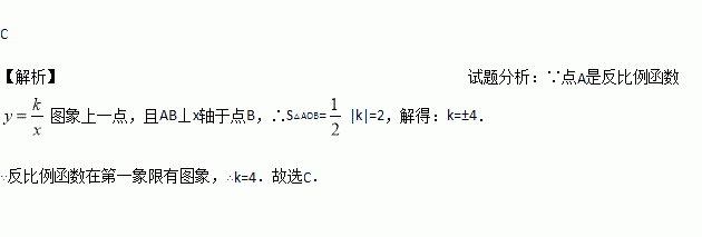 (x>0)的图象上一点A作AB⊥x轴于点B,连接AO,若S△AOB=2,则k的值为( )