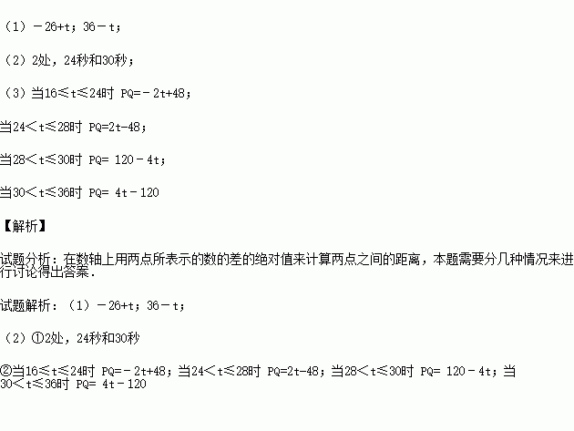 已知数轴上有A、B、C三点,分别表示有理数-26,-10,10,动点P从A出发,以每秒1个单位的速度向终点C移动,设点P