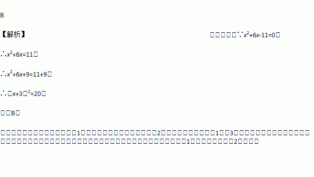 A. (x-3)2=20 B. (x+3)2=20 C. (x-3)2=2 D. (x+3)2=2