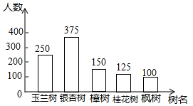 (4)根据统计图中的数据可以估计这8万人中最喜欢玉兰树的有多少人.