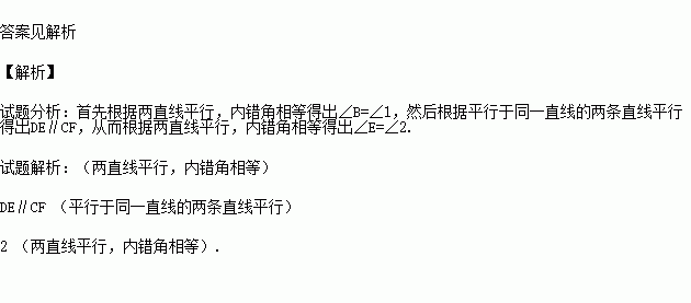 如图, AB∥DE,试问∠B、∠E、∠BCE有什么关系.