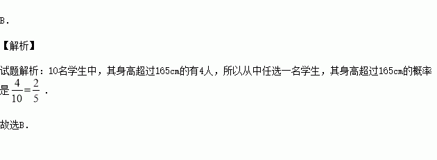 10名学生的身高如下(单位:cm)159、169、163、170、166、165、156、172、165、162,从中任选一名学生,其身高超过165cm的概率是( )