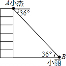 小杰在楼上点A处看到楼下点B处的小丽的俯角是36°,那么点B处的小丽看点A处的小杰的仰角是