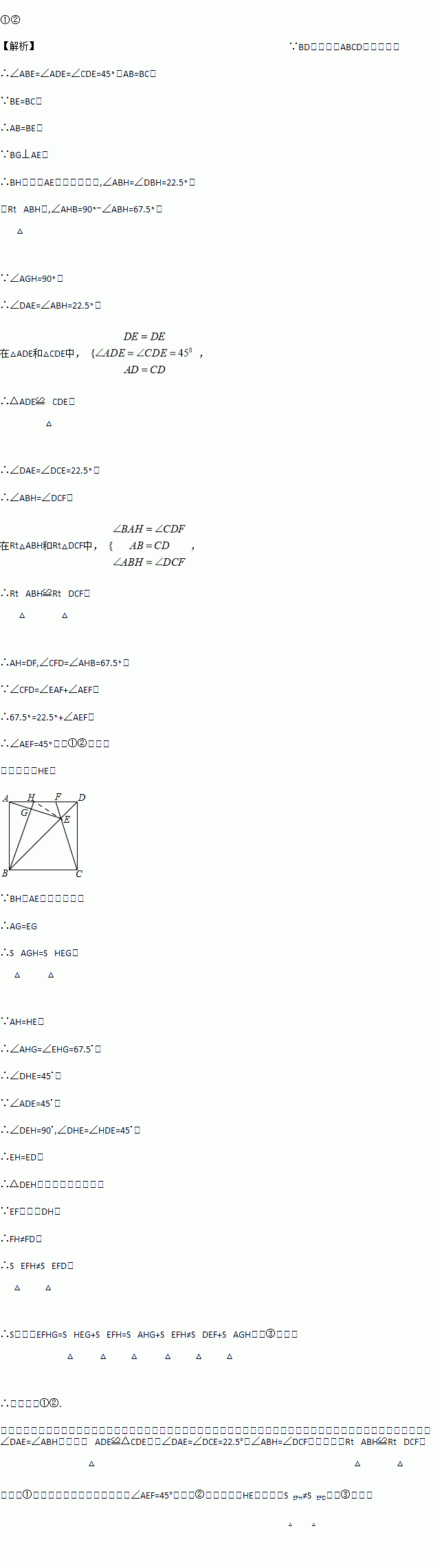 ①AH=DF; ②∠AEF=45°; ③S四边形EFHG=S△DEF+S△AGH,