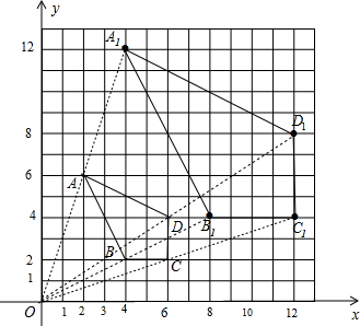分析 先根据以原点为位似中心为位似图形对应点的坐标的关系,把四边形ABCD各顶点坐标乘以2得到A1(4,12),B1(8,4),C1(12,4),D1(12,8),然后描点即可得到四边形A1B1C1D1.