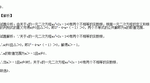 A.m<﹣1 B.m>1 C.m<1且m≠0 D.m>﹣1且m≠0