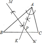 解:作∠CAB的角平分线AK,再作AB的垂直平分线MN,