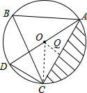 (2)连接OC,过O作OQ⊥AC于Q,求出∠AOC的度数,求出高OQ和弦AC,求出扇形和三角形的面积,相减即可.
