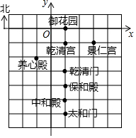 分析 根据保和殿的点的坐标,建立平面直角坐标,进而得出养心殿的点的坐标.