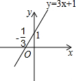 解答 解:(1)如图所示:当x>-$\frac{1}{3}$时,函数值y大于零;(2)当x<-$\frac{1}{3}$时,函数值y大于零;(3)当y=-2,则x=-1,即当x<-1时,函数值y小于-2.