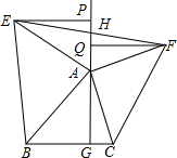 (3)根据全等三角形△EPH≌△FQH,△EPA≌△AGB,△FQA≌△AGC,推出S△FQAS△AGC,S△FQH=S△EPH,S△EPA=S△AGB,即可求出S△AEF=S△ABC,根据三角形面积公式求出即可.