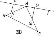 (3):①当点P在BA上,点Q在AC上,如图3,![]()