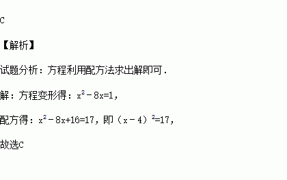 C.(x﹣4)2=17 D.(x﹣4)2=15
