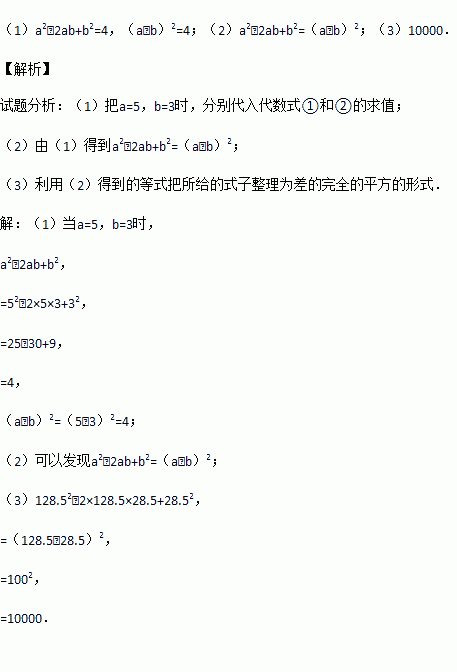 (3)利用你探索出的规律,求128.52﹣2×128.5×28.5+28.52的值.