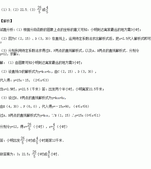 (1)根据图象回答:小明到达离家最远的地方需 小时,
