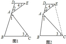 解答:解:(1)如图1,∵∠1=∠3,∠2=∠4,