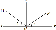 如图,已知EO⊥AB于点O,OE平分∠MON,那么∠1与∠2相等吗?为什么?