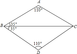 解答 解:全等.理由如下:在△ABC与△DBC中,$\left\{\begin{array}{l}{∠A=∠D=110°}\\{∠ABC=∠DBC=35°}\\{BC=BC}\end{array}\right.$,∴△ABC≌△DBC(AAS).