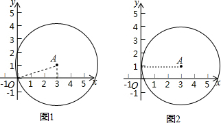 解答:解:如图1,当圆心在(3,1)与经过原点时,r=