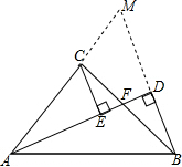 (3)由于△AFC≌△BCM,得到AF=BM=2BD,推出△ADB∽BDF,得到$\frac{DF}{BD}=\frac{BD}{AD}$,通过化简得到$\frac{2DF}{AF}+2-\frac{AF}{DF}$=0,设$\frac{DF}{AF}$=x,解方程2x+2-$\frac{1}{x}$=0,即可得到结果.
