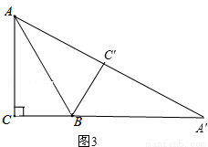 (3)将Rt△A′BC′由图1的位置按顺时针方向旋转α角(0°≤α≤120°),当A、C′、A′三点在一条直线上时,请直接写出旋转角的度数.