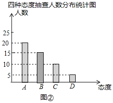 分析 (1)根据扇形统计图中的数据可以求得图①知A所占的百分比,再结合条形统计图,从而可以求得本次抽样调查的学生和B态度的学生,从而可以将条形统计图补充完整;
