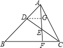 分析:根据题意作辅助线,根据已知条件可证明△DGE≌△CFE,所以DG=FC,根据比例关系得知DG∥FC,最后根据三角形平行线段成比例关系即可得出答案.