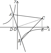 (2)过A作AD⊥x轴于点D,过C作CE⊥x轴于点E,连接OC,可知OC⊥AB且平分AB,由三角函数的定义可求得$\frac{CO}{AO}$=2,可设出A点坐标,由△ADO∽△OEC,可表示出C点坐标,则可求得k的值.
