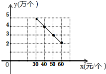 | 价格x(元/个) | … | 30 | 40 | 50 | 60 | … |
