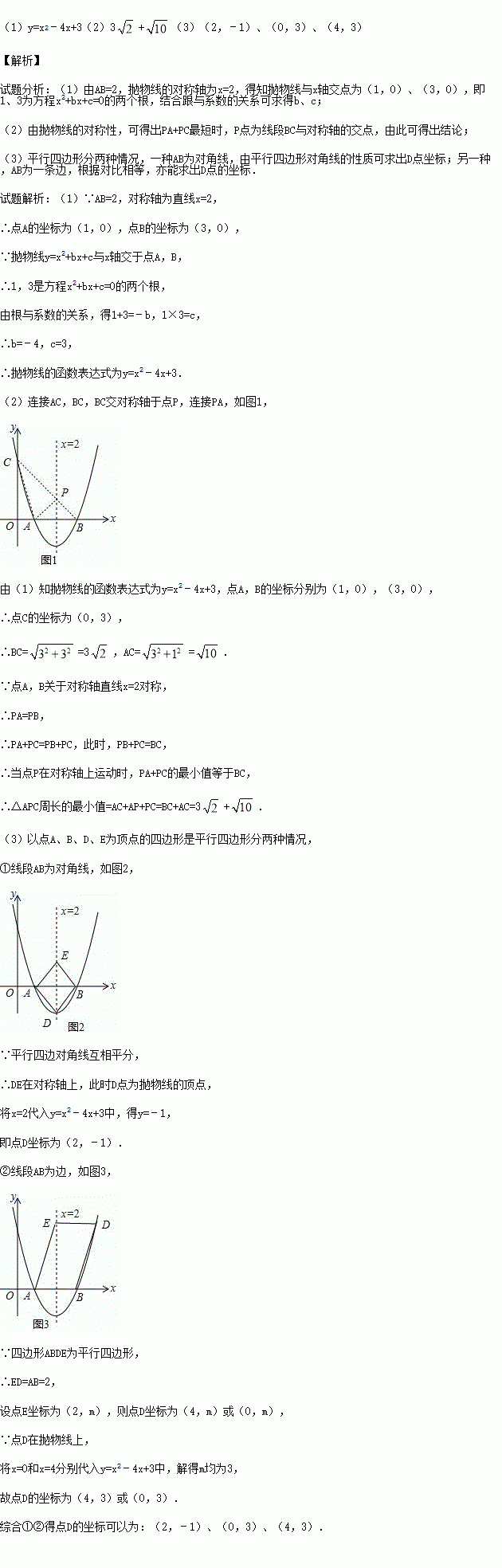 (3)设D为抛物线上一点,E为对称轴上一点,若以点A、B、D、E为顶点的四边形是平行四边形,求点D的坐标.(直接写出结果)