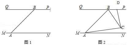 岸河堤的情况.如图,灯A射线自AM顺时针旋转至AN便立即回转,灯B射线自BP顺时针旋转至BQ便立即回转,两灯不停交叉照射巡视.若灯A转动的速度是a°/秒,灯B转动的速度是b°/秒,且a、b满足|a﹣3b|+(a+b﹣4)2=0.假定这一带长江两岸河堤是平行的,即PQ∥MN,且∠BAN=45°