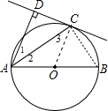 分析 (1)连接OC,如图,由OA=OC得到∠2=∠3,由AC平分∠DAB得到∠1=∠2,则∠1=∠3,于是可判断OC∥AD,由于AD⊥CD,则OC⊥CD,然后根据切线的判定定理即可得到结论;