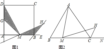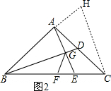 (3)如图2,延长BA到点H,使AH=AD,连接CH,![]()
