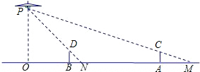 如图,路灯距地面8米,身高1.6米的小明从距离灯的底部(点O)20米的点A处,沿OA所在的直线行走14米到点B时,人影的长度( )