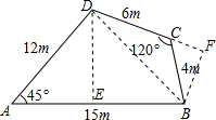 ∴此块地的面积为(6$\sqrt{3}$+45$\sqrt{2}$)m2.