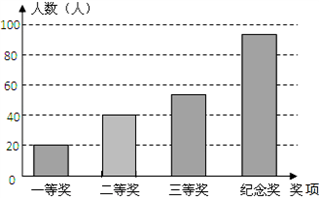 某中学举行数学知识竞赛,所有参赛学生分别设有一、二、三等奖和纪念奖,获奖情况已绘制成如图所示的两幅不完整的统计图.根据图中所给出的信息解答下列问题: