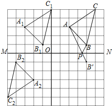 (3)如图所示,作点B关于MN的对称点B',连接AB',交MN于一点,则该点即为点P.![]()