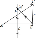 (3)在△ABC内到边BC和BA两边距离相等的点在哪里?到A、B两点距离相等的点在哪里?请你画出满足下面条件的点M:点M既到BC和BA两边距离的相等,又到A、B两点距离的也相等.