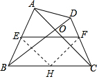 解答 解:取BC的中点H,连接EH、FH,∵E、F分别是AB、CD的中点,∴EH=$\frac{1}{2}$AC=2,FH=$\frac{1}{2}$BD=3,EH∥AC,FH∥BD,∴∠EHF=90°,∴EF=$\sqrt{E{H}^{2}+F{H}^{2}}$=$\sqrt{13}$,故答案为:$\sqrt{13}$.