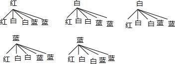 分析 (1)先画树状图展示所有25种等可能的结果数,找出两次摸到的球的颜色为红色和蓝色的结果数,然后根据概率公式求解;